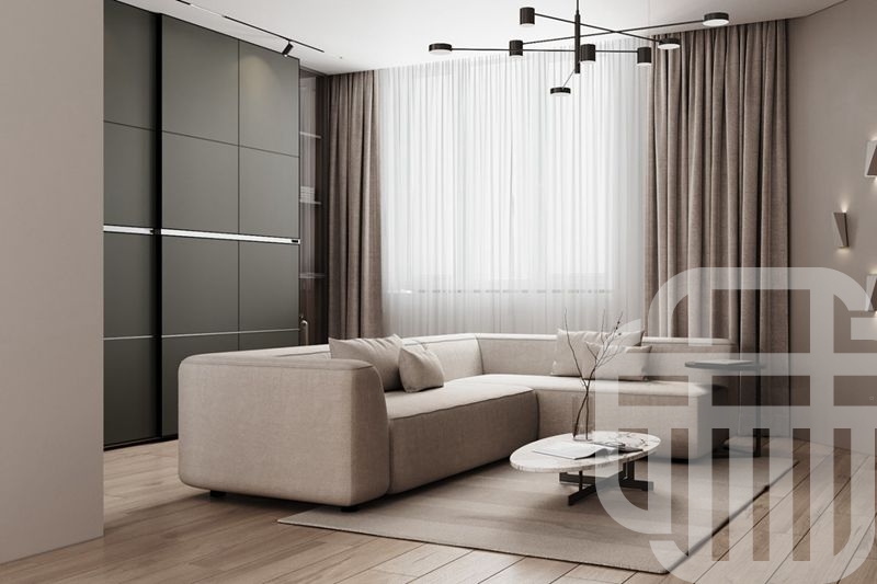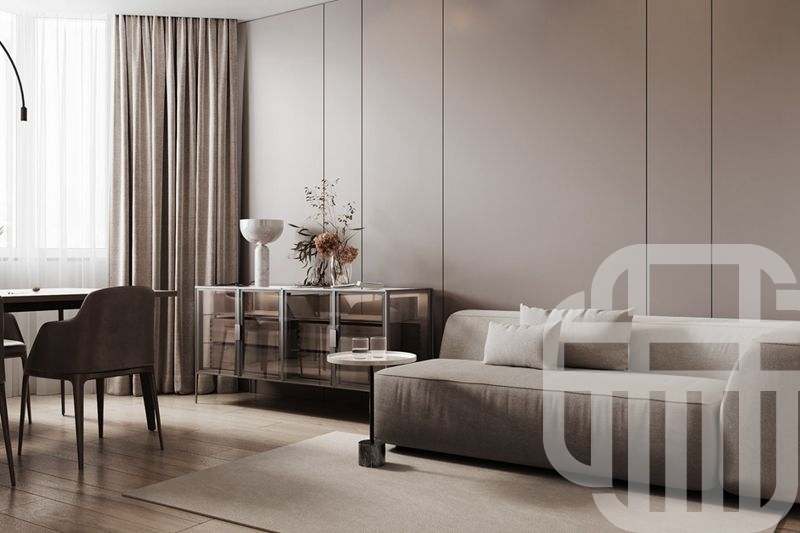 本案例是两室一厅,平时是业主和妻子两人居住,所以将次卧设计成书房+卧室的形式,既可以作为客房又可以作为书房,满足业主的使用需求。