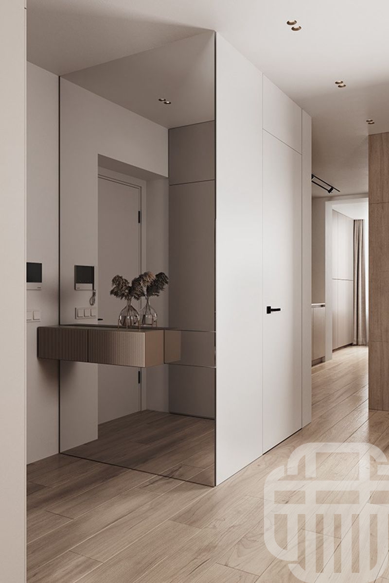 门口设计为玄关方式,既能收藏物品,又显得时尚。