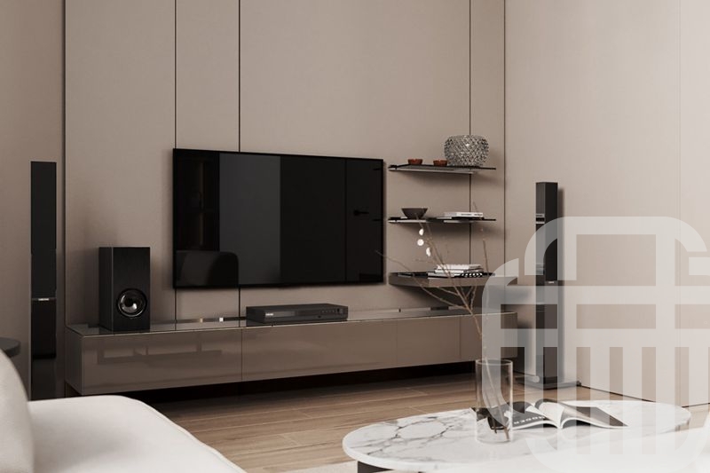 电视采用悬挂式安装方式,背景也有暗格,可以收纳物品,最大的限度的空间利用。